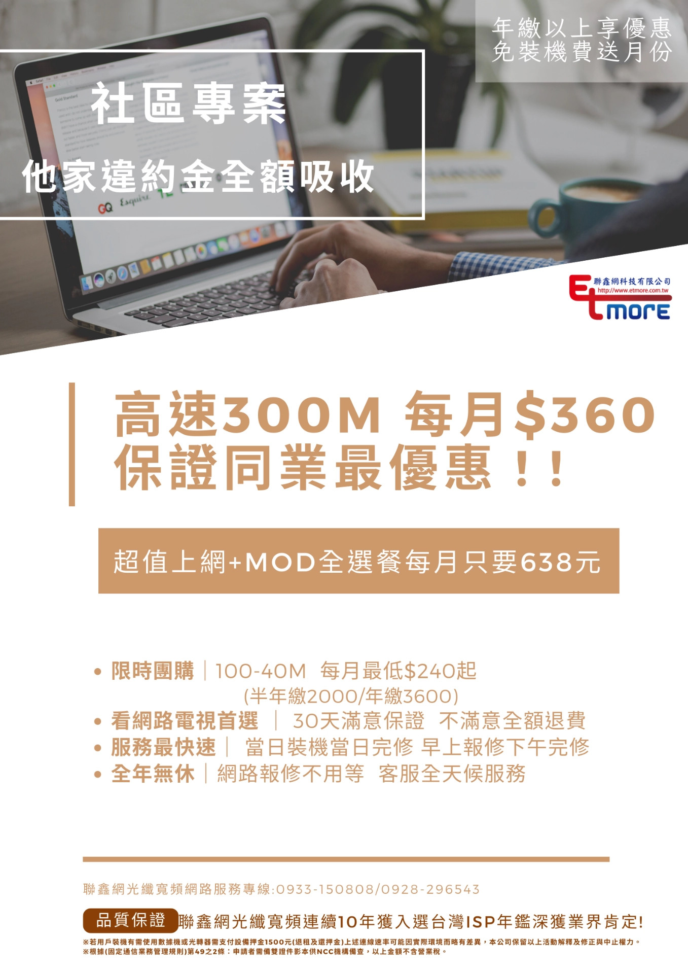 保證一.使用中華電信專線網路 = 社區網路穩定保証
